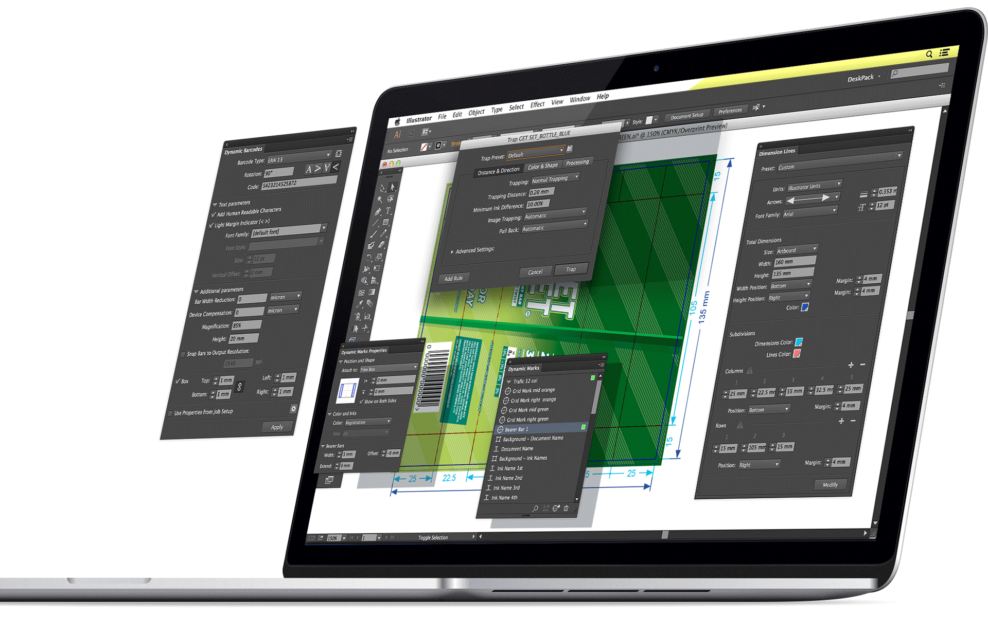 DeskPack enthält verschiedene Plugins für die Verpackungsdruckvorstufe für Adobe® Illustrator® und Adobe® Photoshop®, die für jede Druckvorstufenumgebung geeignet sind.