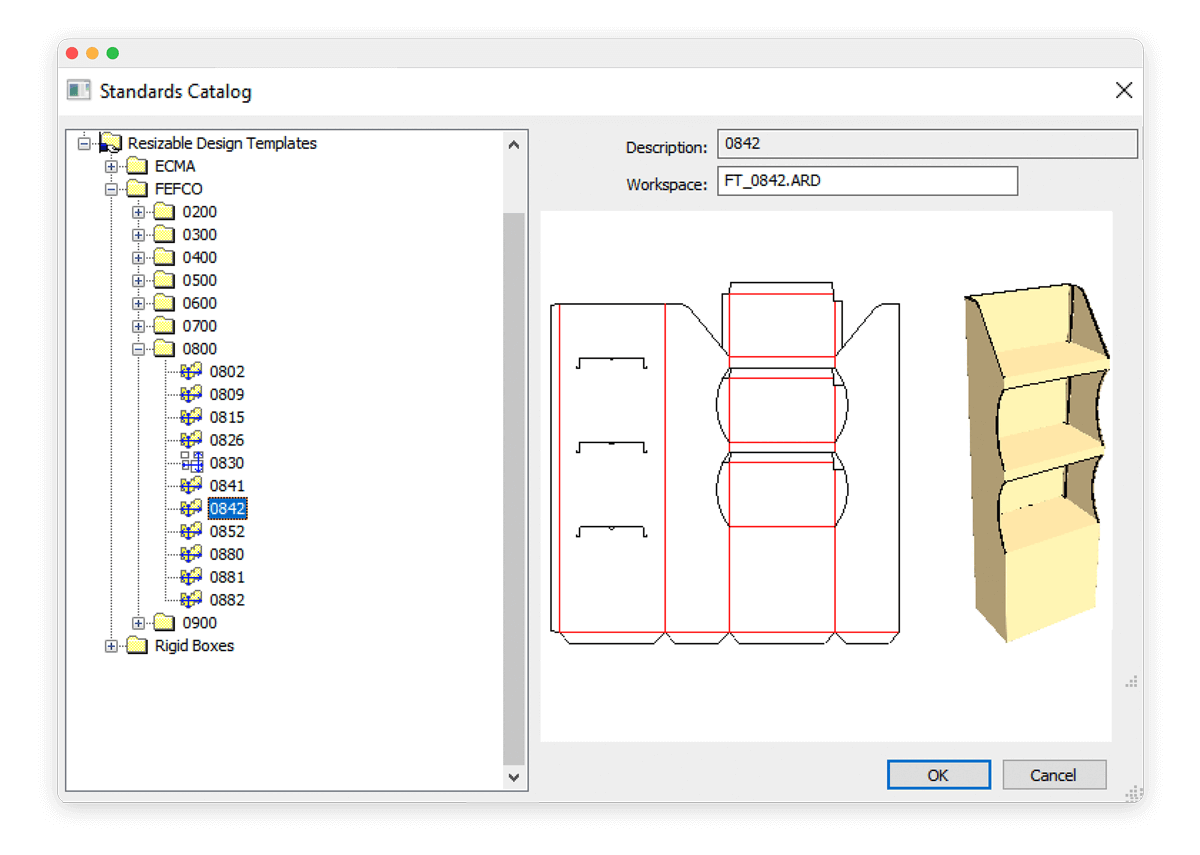 Create production-ready packaging and displays in seconds by choosing templates from the most extensive library of design styles. Try out 31 brand new FEFCO corrugated designs, now in the Style Catalog. ArtiosCAD now includes the complete FEFCO 12th Edition code book of corrugated design styles.