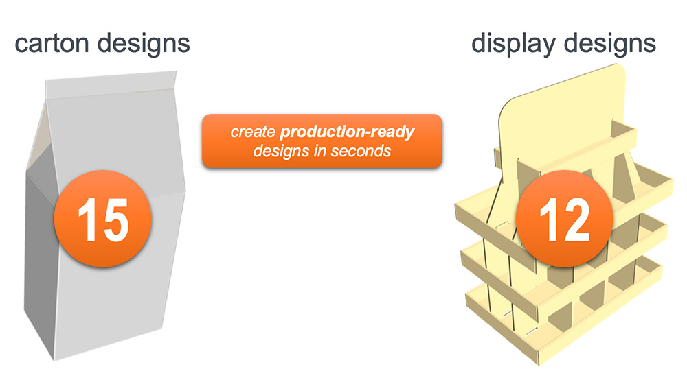 Create packaging and displays in seconds by choosing templates from the increasingly extensive library. Try out 41 brand new designs, now in the Style Catalog.