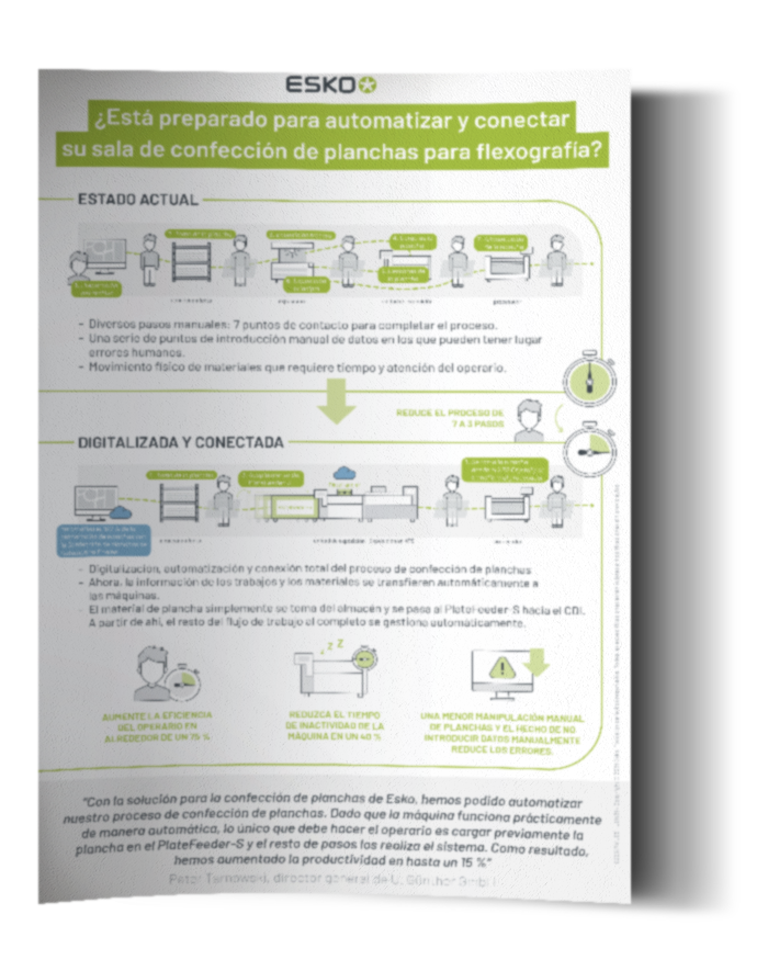 Si está sobrecargado en general, con trabajos de última hora y una calidad irregular, queremos que sepa que no está solo. Los procesos de confección de planchas de flexografía tradicionales, que constan de varios pasos, pueden causar errores y repeticiones de trabajos, lo que reduce el tiempo de actividad de la prensa y, en última instancia, afecta a la productividad y rentabilidad de su operativa. ¿La buena noticia? Crear procesos de confección de planchas para flexografía de última generación, optimizados y actualizados es muy sencillo.