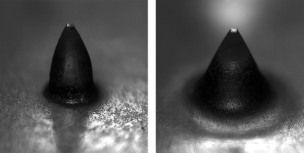 Imagen muy ampliada con punto de brillos aislado, vista en perspectiva.